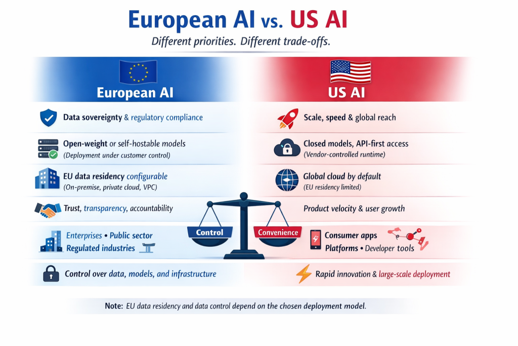 Les outils d'IA européens suivent une philosophie différente de celle de leurs homologues américains. Voici ce qui les distingue :