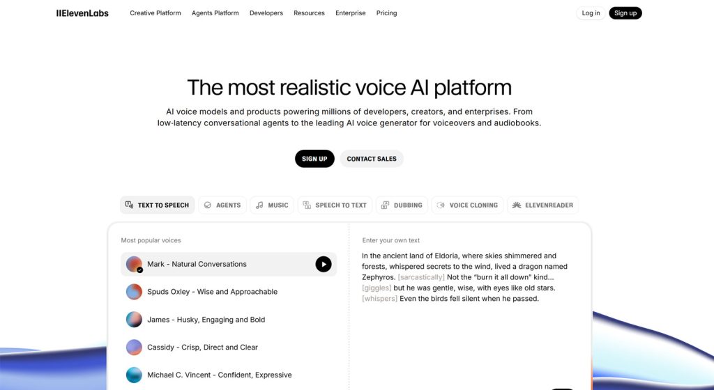 Entreprise britannique reconnue pour sa synthèse vocale et son clonage vocal très naturels. ElevenLabs peut reproduire les caractéristiques de la voix à partir de courts échantillons audio, ce qui permet une production vocale évolutive.