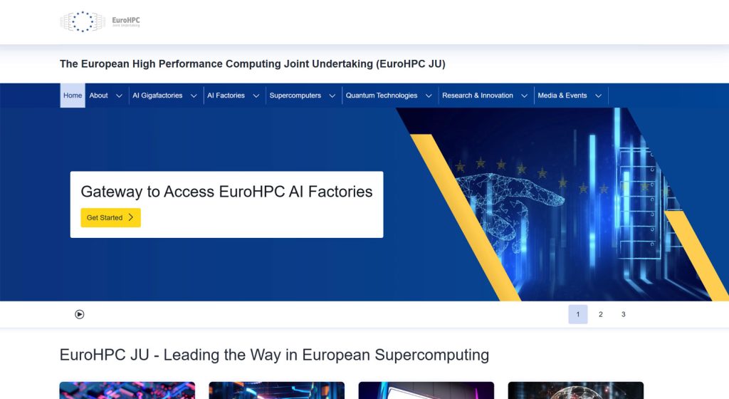 EuroHPC est une initiative publique européenne qui met en place une infrastructure de supercalculateurs pour la recherche et les projets industriels en matière d'IA. Ses “usines d'IA” fournissent une capacité de calcul massive pour des cas d'utilisation hors de portée des services commerciaux en nuage.